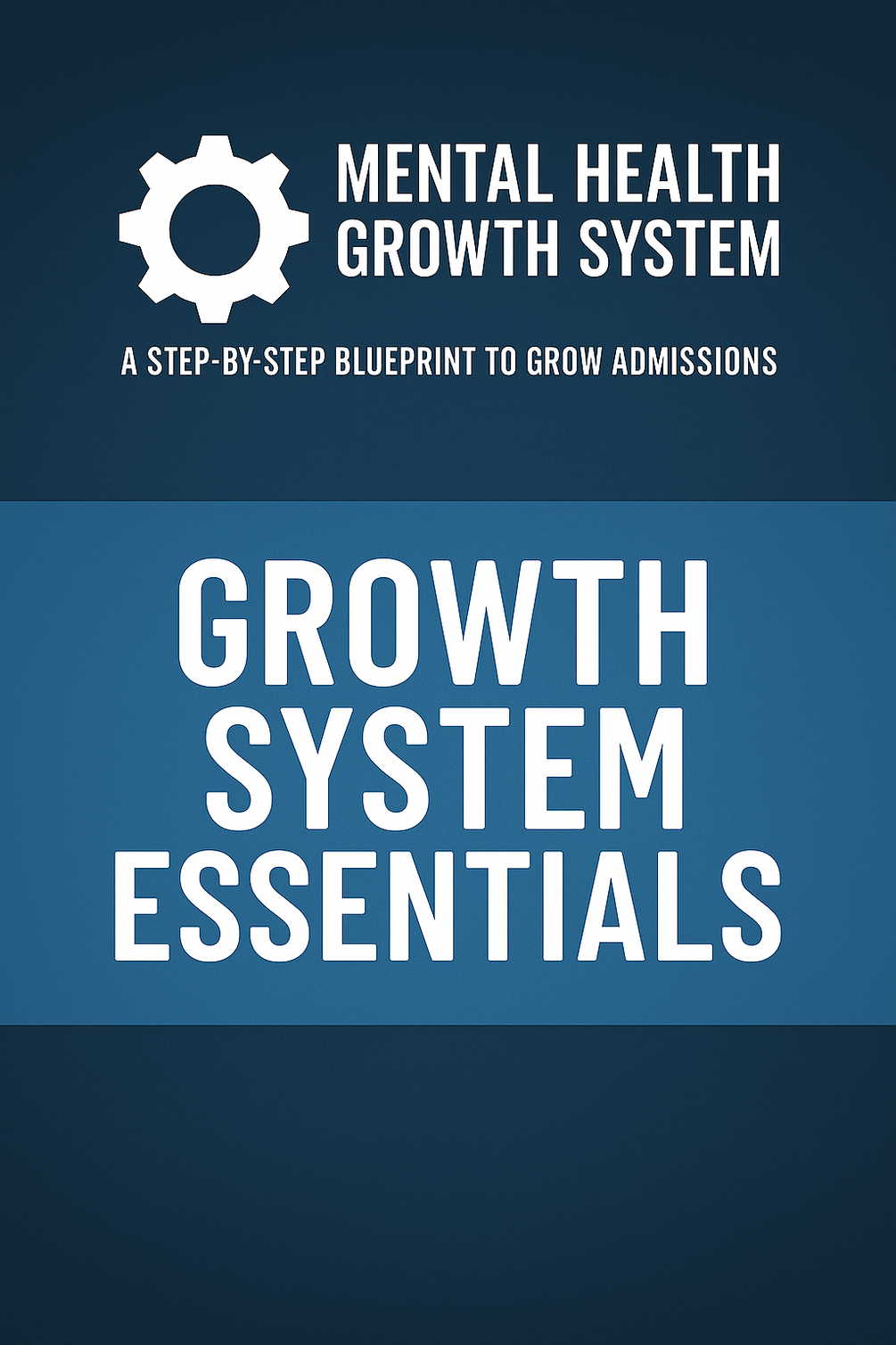 The Mental Health Growth System: Growth Systems Essentials is a complete, field-tested guide designed to help behavioral health organizations unlock sustainable growth. Built specifically for mission-driven teams, this toolkit offers a proven framework to increase referrals, strengthen community partnerships, and drive measurable admissions—without losing sight of your values.